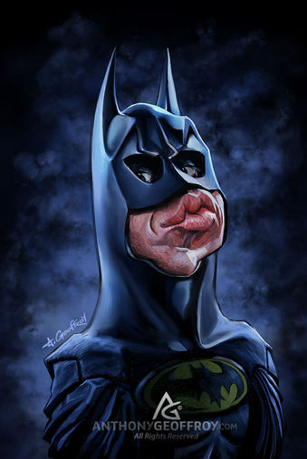 Caricatures of all the actors who interpreted Batman in the cinema.